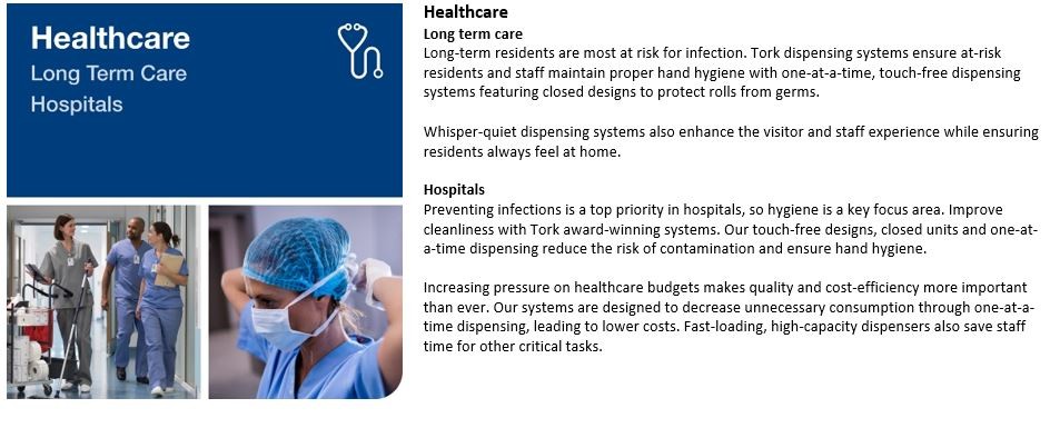 Poor cleanliness can create a negative guest experience and bad reviews for hospitality businesses. Tork's clever hygiene solutions have award-winning attractive designs and are easy to use for a wide range of customers. Our systems allow staff to work smarter, with fast refilling and easy installation improving operational efficiency.