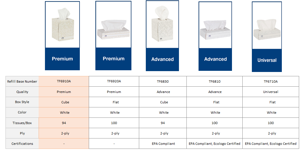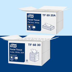 Tork Facial boxes are compatible for both vanity and in-wall dispensers.