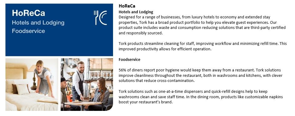 We have products and services that improve the work environment, and we are dedicated to raising hygiene standards for everyone away from home.