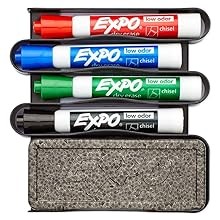 Expo Low Odor Dry Erase Markers minimize distracting smells in the classroom, office and home. The low-odor formula help keeps everyone focused and the quick-drying ink ensures that your messages remain clear and easy to read.