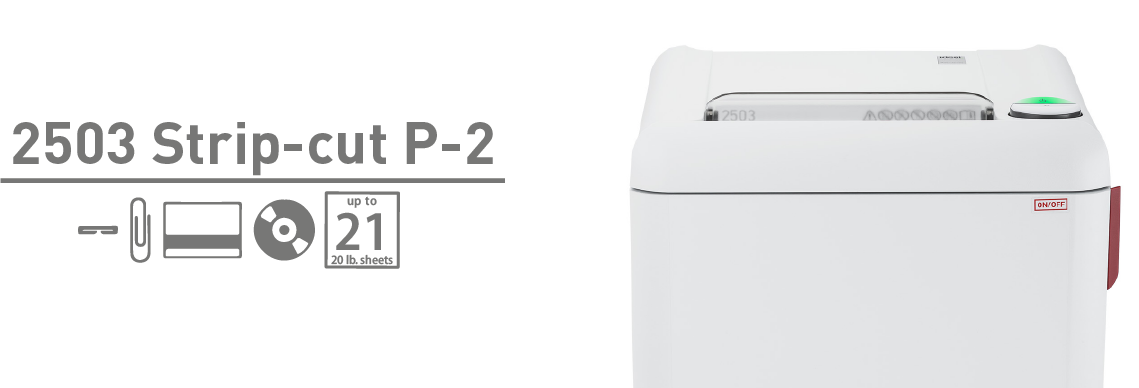 The ideal2503 strip-cut P-2 is a compact, hardworking, entry-level centralized shredder,designed for shredding paper, staples, paper clips, credit cards, and CD/DVDs.