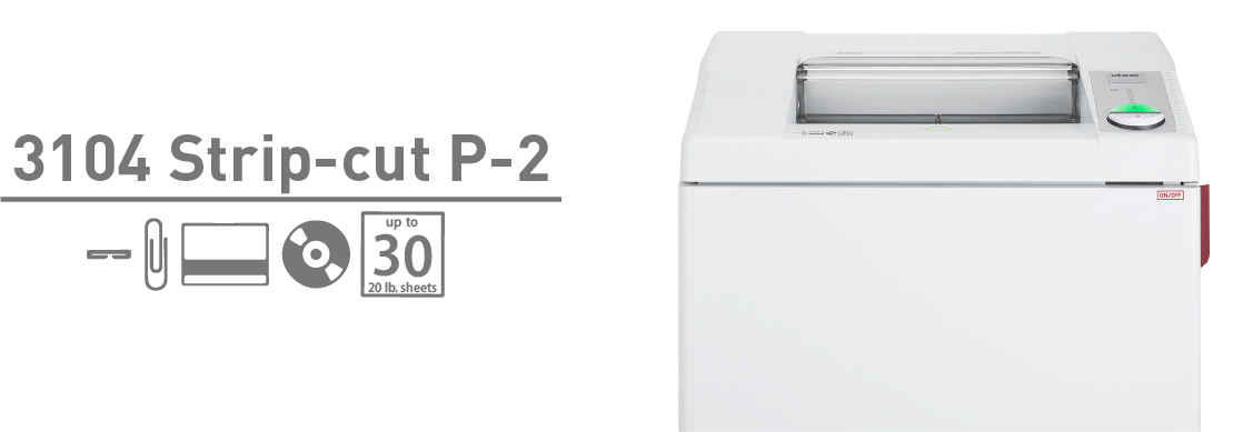 The ideal 3104strip-cut P-2 is a compact, hardworking, entry-level centralized shredder,designed for shredding paper, staples, paper clips, credit cards, and CD/DVDs.