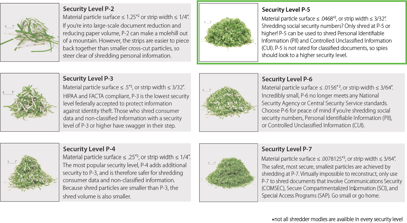 The ideal 3104cross-cut P-5 is a compact, hardworking, entry-level centralized shredder, designedfor shredding paper, staples, paper clips, credit cards. It’s HIPAA and FACTAcompliant, certified to shred Personal Identifiable Information (PII) andControlled Unclassified Information (CUI), the 3104 is federally accepted toprotect information and social security numbers against identity theft.