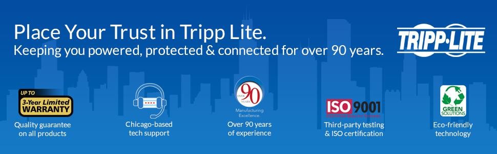 Founded in 1922 in Chicago, Illinois, Tripp Lite is a leading manufacturer of products to power, protect, manage, house, cool, connect and mount your equipment. From the largest data center to the smallest home office, Tripp Lite products keep your equipment running effectively and efficiently. Whether you need to supply power to servers and have reliable battery backup, connect high-resolution video sources to displays and digital signs, or organize and secure IT equipment in rack enclosures, Tripp Lite has the complete solution. Plus, before and after your purchase, our Chicago-based, in-house technical support specialists are available to assist you by phone, email and live chat. With over 90 years of quality products and service, Tripp Lite is a brand you can trust.