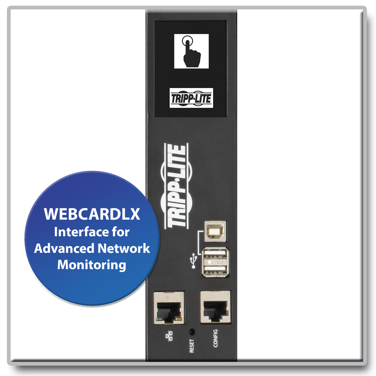 Featuring a built-in, Java-free, HTML5-based LX Platform interface (the mobile-friendly PowerAlert ® Device Manager), the PDU3EVSR6G60A provides complete remote access for power monitoring and email notifications via a secure network or Web browser. Automated alerts help prevent accidental overloads, power loss and downtime. When used with an optional EnviroSense2 environmental sensor (sold separately), it can also perform temperature/humidity and dry contact monitoring, providing IT personnel with enhanced oversight of facility power and environmental conditions. As an added bonus, up to three EnviroSense2 modules can be daisy-chained together. The PDU3EVSR6G60A supports 10/100 Mbps auto-sensing for optimum communication with an Ethernet network. Automated alerts can be configured to warn against potential overload, power loss and downtime. Protocols supported include IPv4, IPv6, HTTP, HTTPS, SMTP, SNMPv1, SNMPv2, SNMPv3, telnet, SSH, FTP, DHCP and NTP. DHCP/Manual configuration support provides the ability to have network settings automatically assigned or manually assigned via a permanent IP address
