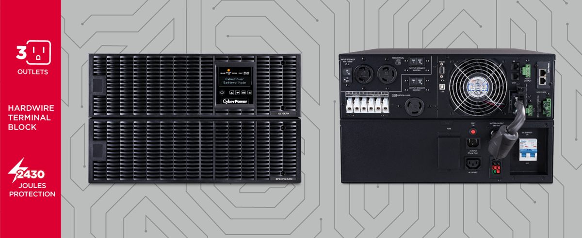 Yes, the OL10KRT is equipped with three battery backup and surge protected outlets and one hardwire terminal block. One outlet provides critical load protection.