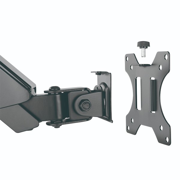 Full motion articulating dual monitor wall mount with gas spring assisted height adjustment allows virtually unlimited viewing angle positions for optimal viewing comfort, 17" to 32", weight up to 17.6 lbs each, Flexiable & Free Adjustment, Cable Management, Detachable VESA Plate, VESA pattern 75x75mm, 100x100mm
