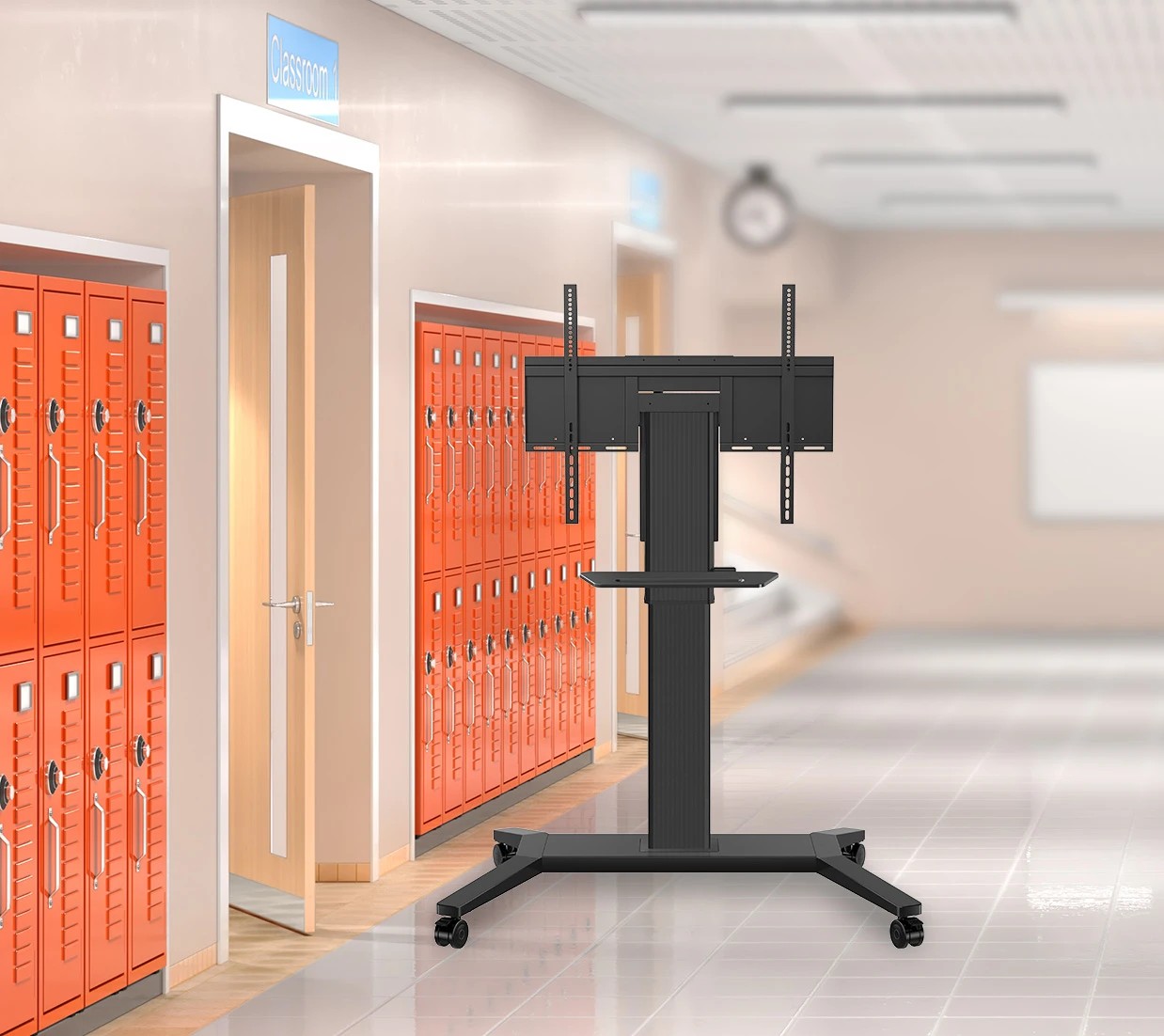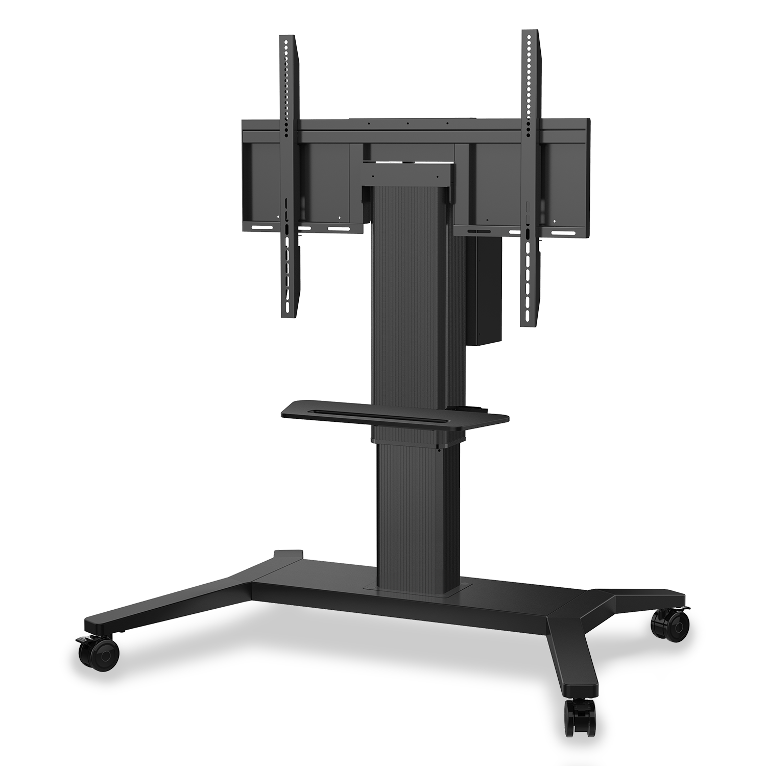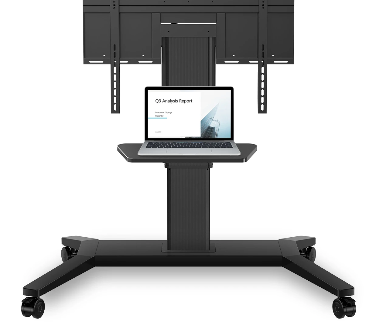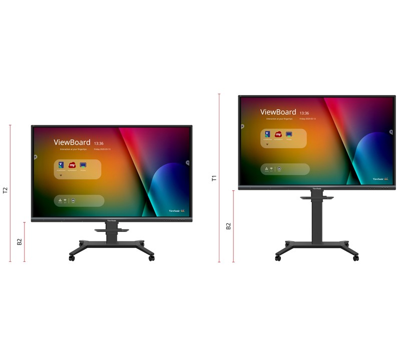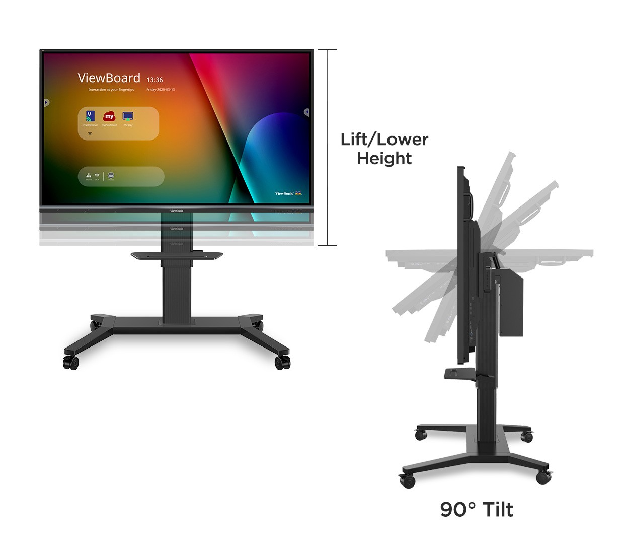 VB-STND-003 motorized trolley cart securely accommodates ViewSonic 55”, 65”, 75”, and 86" ViewBoard