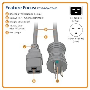The P033-006-GY-HG features a flexible SJT jacket with integral strain relief and fully molded ends for optimum performance. Its gray color makes it easy to identify in a crowded surge protector or power strip, minimizing the chance of accidental disconnection.