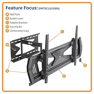 Today’s stunning 4K UHD screens can represent a significant investment. While a wall mount gives you the freedom to hang your screen anywhere, the location might be less than secure, giving you concerns about keeping your display safe from theft. The DWMSC3780MUL helps eliminate those worries. Simply slide the steel security bar through the mounting brackets and attach the four-position combination lock. Then use the included hardware to secure the mounting brackets to the wall plate to deter theft of your display.