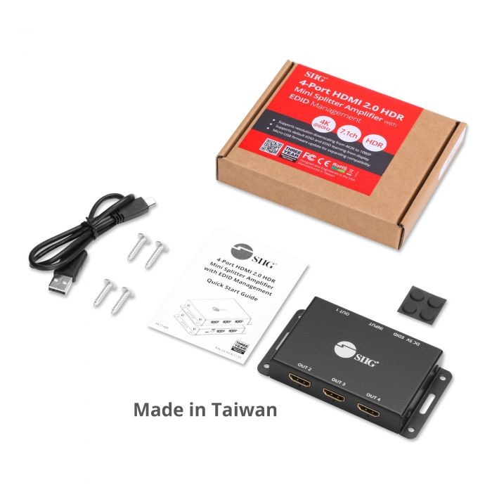 4-Port HDMI 2.0 HDR Mini Splitter Amplifier with EDID Management