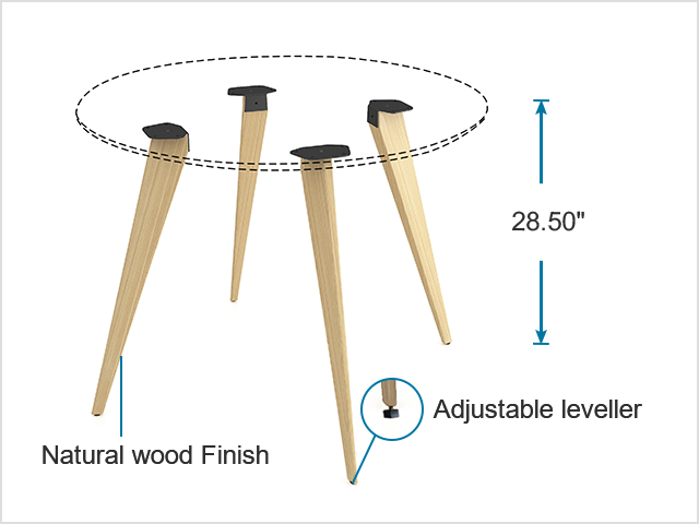The LLR16228 is a natural wood base suitable for 42" and 48" Lorell round table tops. The wooden legs have a stylish tapered design. Adjustable leveling feet help keep the full-length frame level on uneven surfaces.