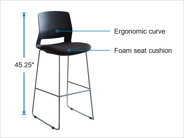 The Lorell® Artic Series, comprising light weight stack chairs and stools, is a versatile seating option that can be used in conference rooms, break rooms, reception areas or as a guest chair in today’s many office formats. The plastic back Is ergonomically curved for back support. The upholstered molded foam seat cushion is available in three colors.
