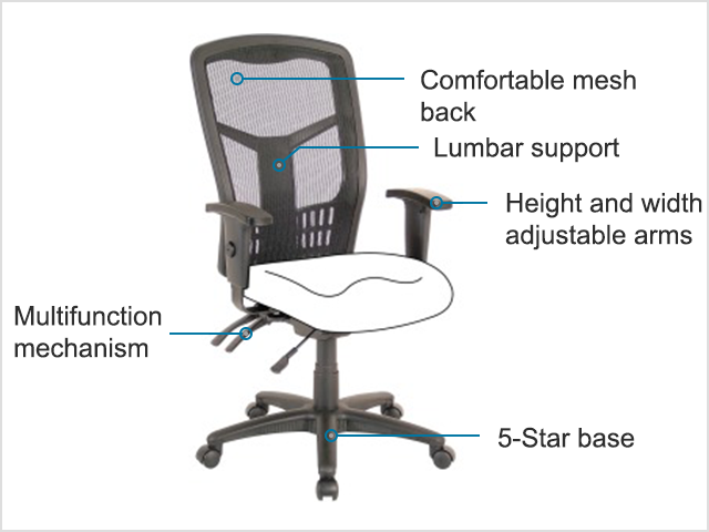 The LorellĀ® Ergomesh executive seating series comprises ergonomically designed high-back and mid-back chairs with mesh back and multiple upholstered premium tractor seat options. These chairs have up to 275 lb. capacity.