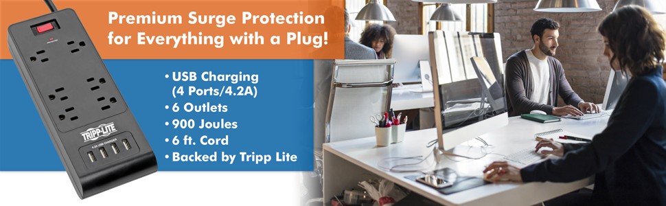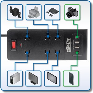 This surge protector is perfect for home and office electronics of all kinds, including computers, monitors, printers, wireless routers, televisions, video game consoles, streaming media players, sound systems, device chargers, DVRs, desk lamps and small appliances. It also provides convenient USB charging power for smartphones, tablets and other devices.