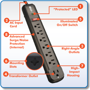 Maker of the legendary Isobar, Tripp Lite is the smart choice for protecting your valuable equipment. This surge protector defends computers and electronics from damaging surges and disruptive line noise. If it is ever damaged by a surge, Tripp Lite will replace it, and connected equipment is covered too.