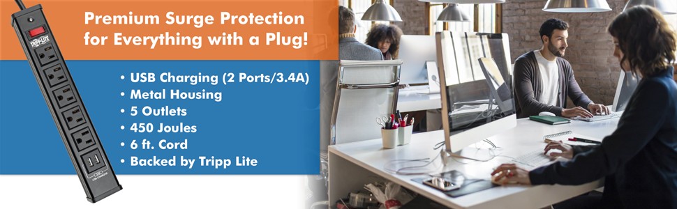 This surge protector is perfect for home and office electronics of all kinds, including computers, monitors, printers, wireless routers, televisions, video game consoles, streaming media players, sound systems, device chargers, DVRs, desk lamps and small appliances. It also provides convenient USB charging power for smartphones, tablets and other devices.