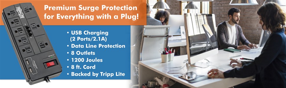 This surge protector is perfect for home and office electronics of all kinds, including computers, monitors, printers, wireless routers, televisions, video game consoles, streaming media players, sound systems, device chargers, DVRs, fax machines, broadband modems, desk lamps and small appliances. It also provides convenient USB charging power for smartphones, tablets and other devices.
