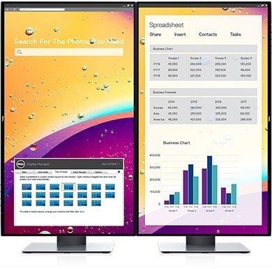More ways to multitask: Easily organize multiple applications using predefined templates or a customized template with the Easy Arrange feature on Dell Display Manager software. Plus, you can conveniently tile your applications across a multi-monitor setup.
