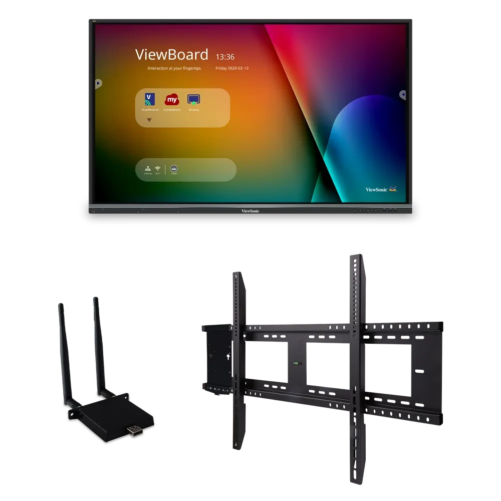 Perfect for education environments, this ViewBoard bundle delivers the most useful items classrooms need to get up and running with their ViewBoard display. You can quickly install the ViewBoard display with the included wall mount, while the included plug-in module provides fast wireless internet connection.