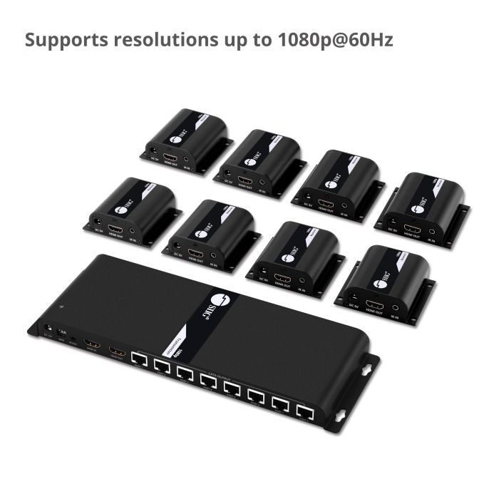 Extends 1080p signals up to 130 feet to eight HDMI displays over a single Cat6 cable
