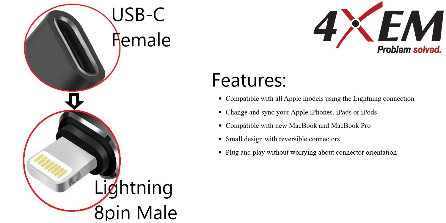 Use your existing USB Type C cable to connect to this converter and transfer data or charge your device. Compatible with all Apple devices that utilize the Lightning connection. This adapter will not only charge your device, it will also sync your data. 4XEM adapters come with our unmatched 3 year warranty for worry free purchases.