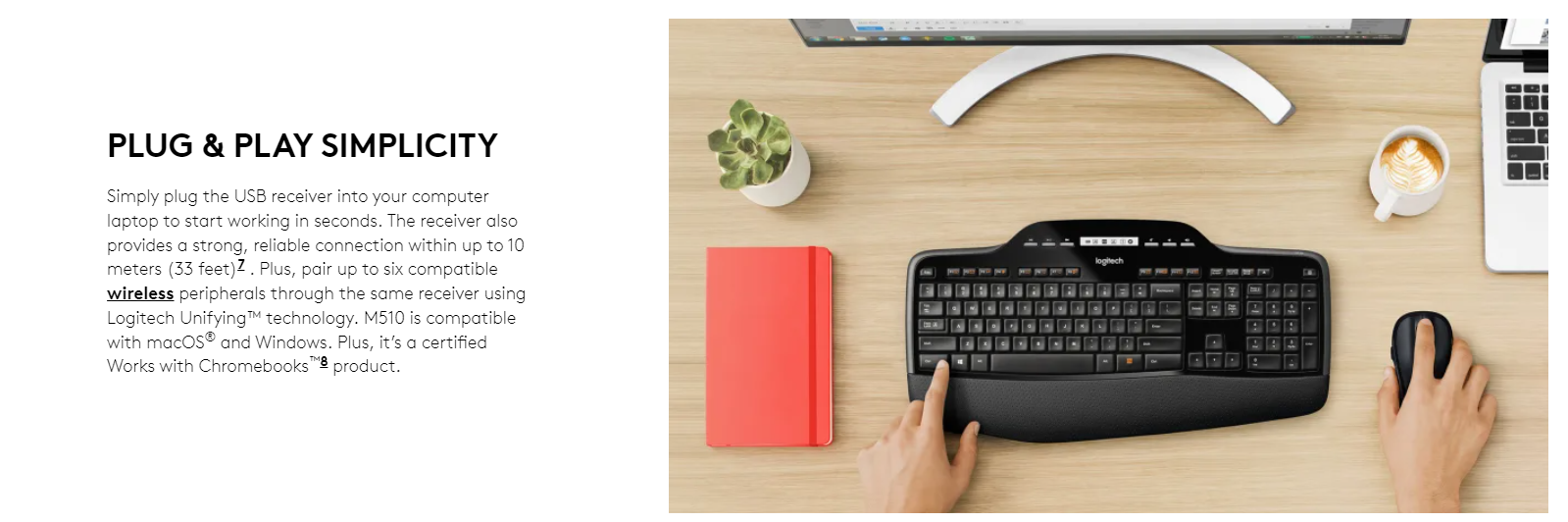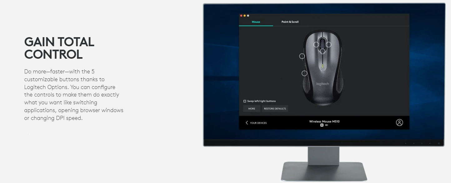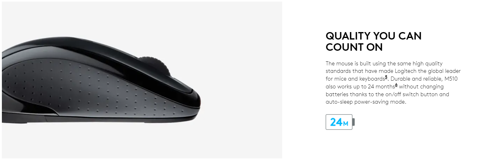M510 is ready for any task, with extra comfort, advanced controls, and up to 24-months of battery life. Work comfortably thanks to the sculpted shape, rubber grips and palm support—5 programmable buttons.