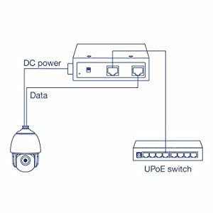 No power adapter necessary; the UPoE splitter takes a UPoE network connection, and splits power and data into separate connections to network a non-PoE device with power up to 100m (328ft.)