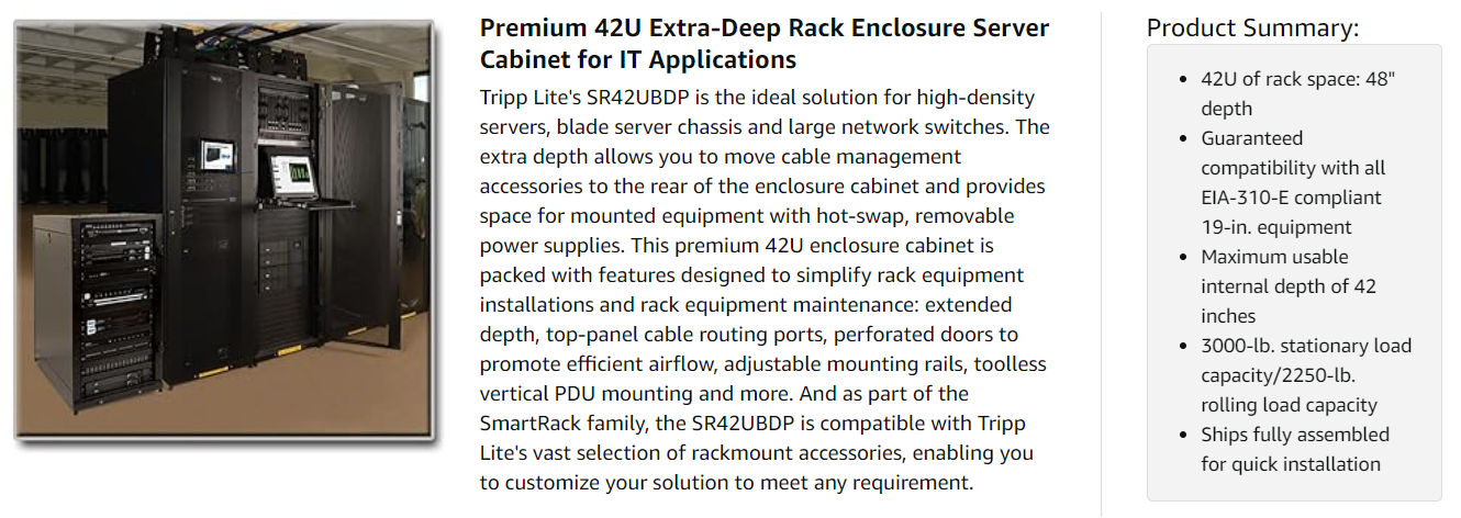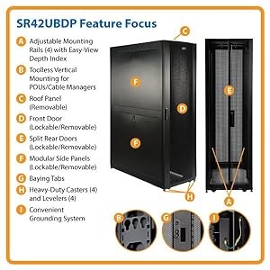 With an extended 48-inch depth, the SR42UBDP provides the extra space needed for mounting cable management equipment to the back of the rack for improved airflow. The extra space also leaves ample room to service equipment containing removable hot-swap power supplies.