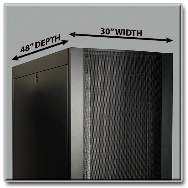 With an extended 48-in. depth, the SR42UBDPWD provides the extra space needed for mounting cable management equipment to the back of the rack for improved airflow. The extra space also leaves ample room to service equipment containing removable hot-swap power supplies. Its 30-in. width is larger than a standard 24-in. wide enclosure cabinet to supply extra room for equipment installation and service, along with cable management and PDU side-mounting options to keep items out of the airflow path for proper cooling.