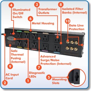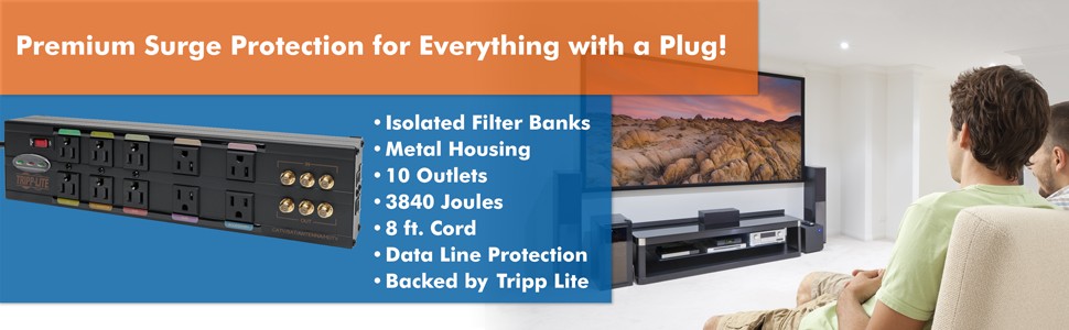 Tripp Lite is the smart choice for protecting your valuable equipment. This surge protector defends computers and electronics from damaging surges and disruptive line noise. If it is ever damaged by a surge, Tripp Lite will replace it, and connected equipment is covered too.