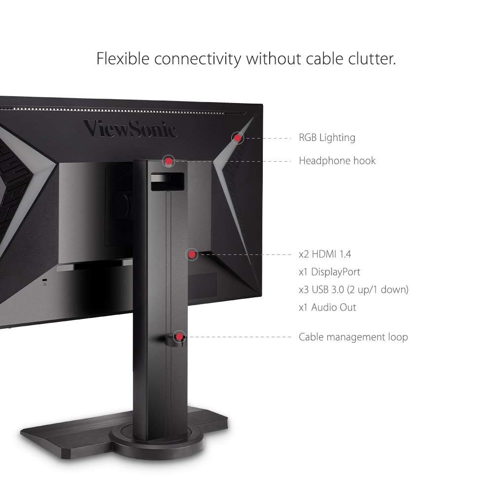 To lock in that perfect angle necessary for drawn out epic gaming sessions, this monitor features a fully adjustable ergonomic stand capable of considerable swivel, pivot, tilt, and height adjustment. An integrated headphone hook keeps your headphones within arm’s reach, while a cable management design reduces clutter around your gaming space.