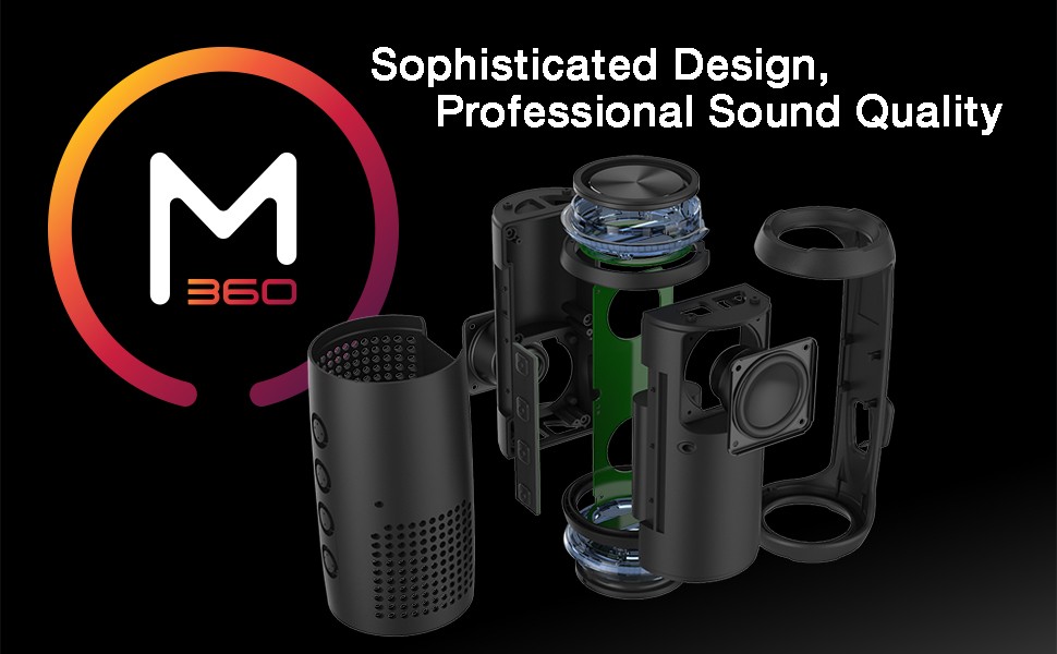 Our Morpheus 360 Sound-Ring Wireless Portable Speakers are comprised of 2 active speakers and 2 passive radiators, providing a Dynamic Bass Response, while still hitting the mid-range and high-end tones you expect. Our 40mm Neodymium composite drivers ensure distortion-free music, movies and phone calls.12 Watts Loud. Our state-of-the-art design is TWS (True Wireless Stereo) which allows you to pair two Sound-Ring Speakers together for 360 degree Stereo Sound. Spread the speakers apart, up to 25 feet and enjoy the crisp, clear audio and deep bass. We designed the Cylinder utilizing ABS Plastic on the ends and the body, while wrapping the speaker in a Fabric Mesh. The end result is a cutting-edge profile that is Rugged, Shock Resistant, and Waterproof IPX6. We integrated One-Touch Media Controls on the face of the wireless portable speaker, so you can switch songs forward/back, adjust volume up/down and even answer/make calls with the touch of a single button. 10-12 hour play time at medium volume. 1-2 hours charge time.