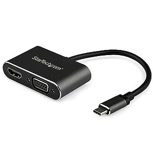 Avoid the hassle of carrying different adapters, with a 2-in-1 USB-C monitor adapter. With VGA, and HDMI outputs, you can conveniently connect your laptop to any HDMI or VGA-equipped display, using this multiport adapter.