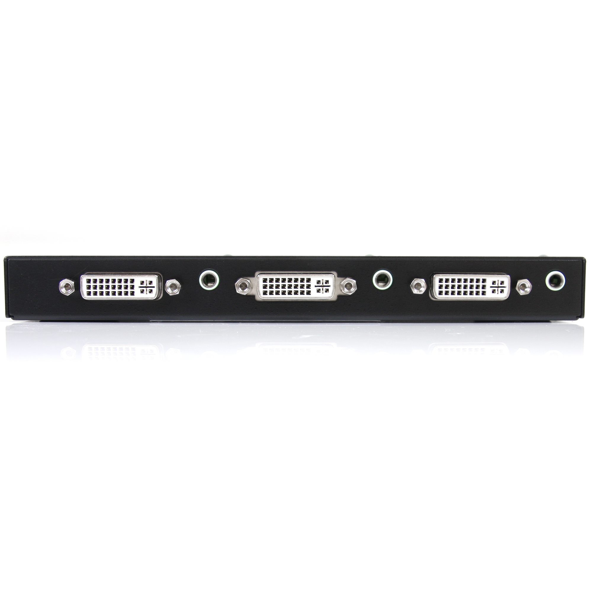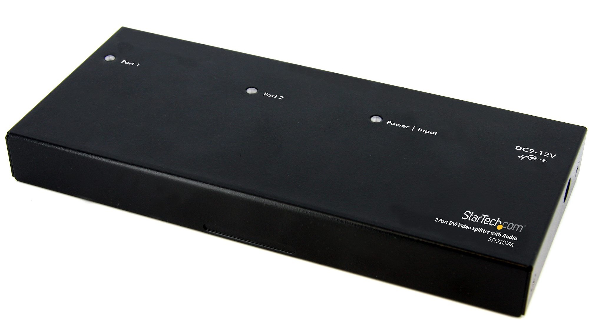 The ST122DVIA DVI splitter lets you share one DVI video and audio source on two displays and acts as a signal amplifier that allows you to locate your DVI monitors up to 33ft (10 m) away from your computer or DVI signal source.