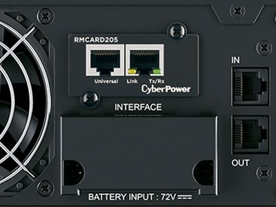 Displays UPS status data and configures operating settings from up to 10 ft. away (cable not included). LCD allows configuration of IP address settings with the pre-installed RMCARD205 network card.
