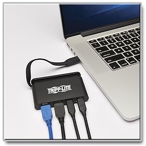 The U460-T04-2A2C-1 is specifically designed for use with the MacBook, Google Chromebook Pixel and other laptops, tablets and devices equipped with a USB-C or Thunderbolt 3 port. It requires no software, drivers or external power.