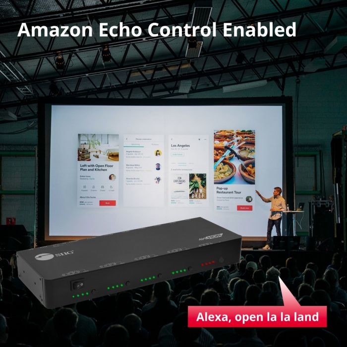 Works with Amazon Alexa Echo voice control - Flexible source control options: 1) Push buttons, 2) IR remote, 3) RS-232 control, 4) IP control, 5) Cloud & Alexa Echo voice control, 6) Control4 Home Automation driver is available on our website