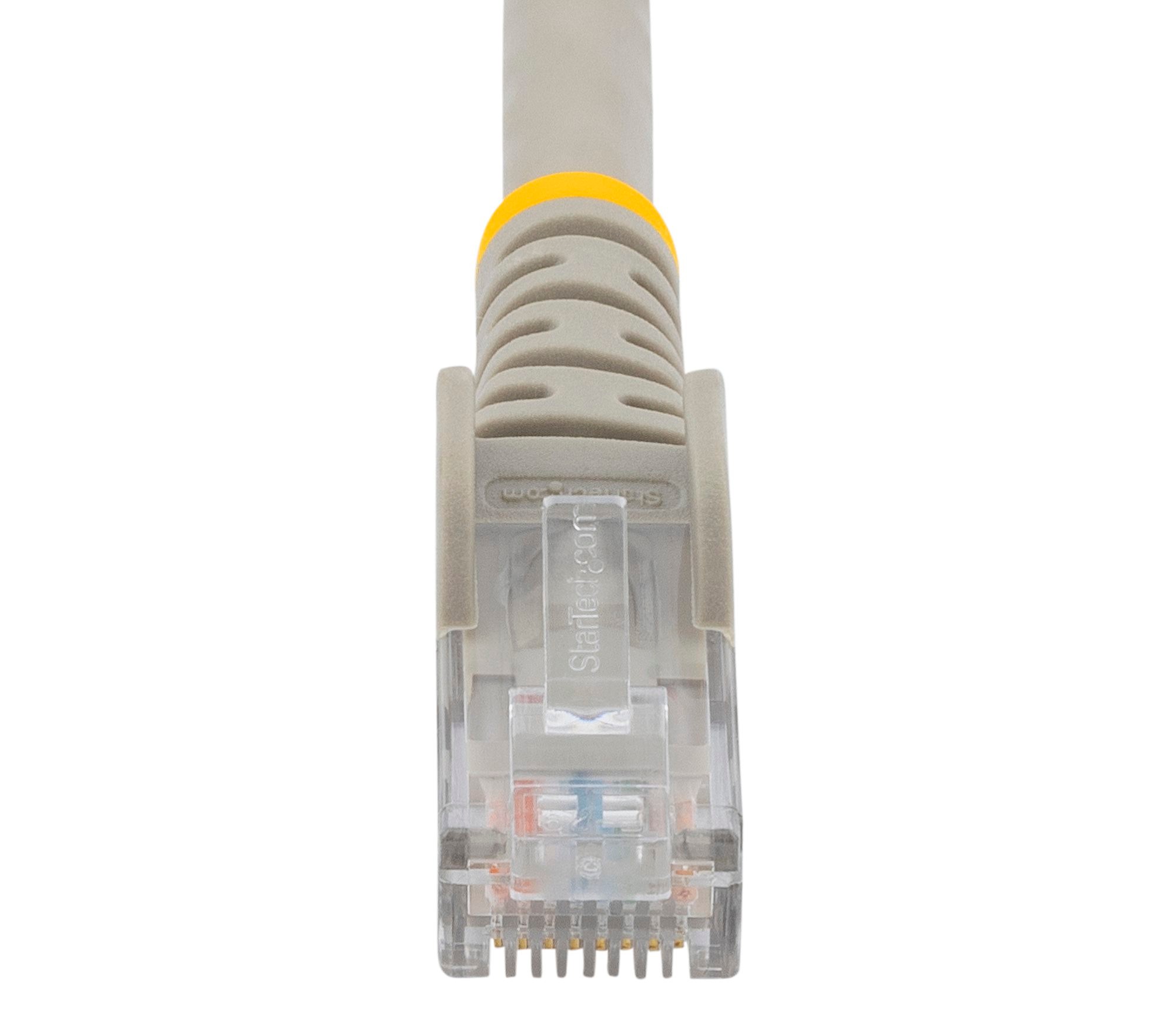 The cable features molded boots that offer connector strain relief, by stopping the RJ45 connector termination points from bending at sharp angles, and reducing the risk of damage to the cable, which could decrease network performance.