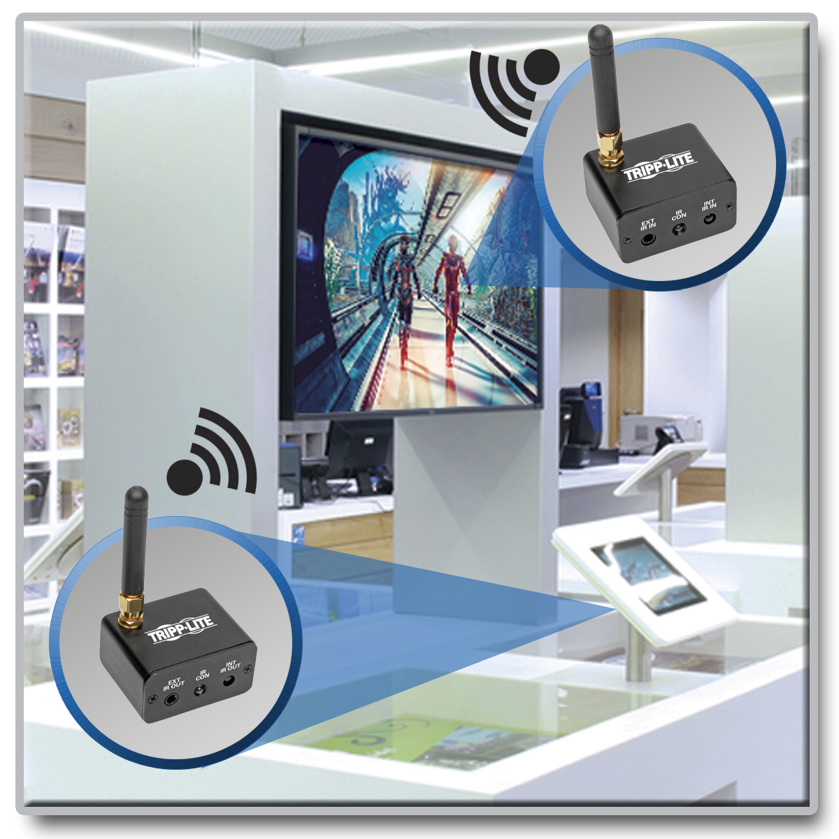 The 915 MHz radio frequency wireless signal for the B164-101-WIR extender kit is not only far-reaching (656 ft.), but also fully functional when the source and display are not in each other’s line of sight and when walls and ceilings are in the signal path.