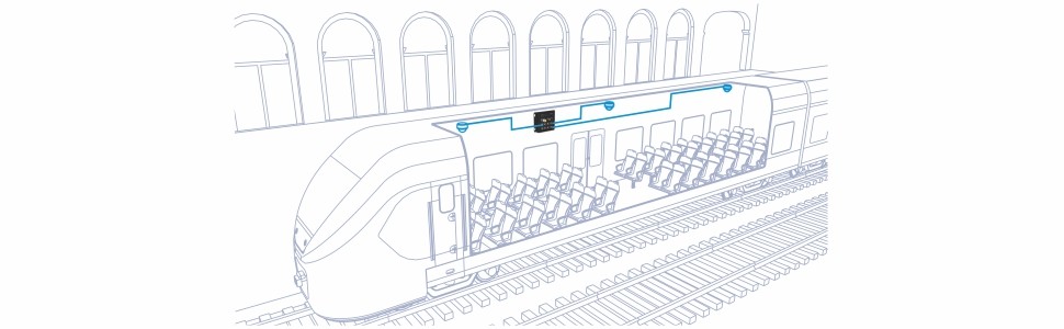 This M12 switch supports an input voltage range from 24 – 56V DC with M23 power and M12 alarm relay interfaces for moving bus, train, and other rolling stock applications