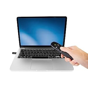 The USB receiver works with virtually any Mac or Windows computer. Simply plug the receiver into your laptop and you're ready to present.