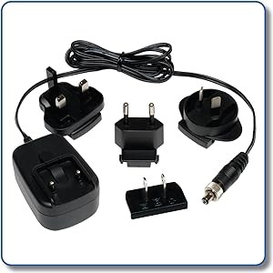 Included international plug adapters: NEMA 1-15P (North America), CEE 7/16 Schuko (Europe), BS1363 (UK) and AS/NZ 3112 (Australia).