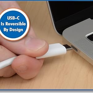 Unlike traditional USB connectors that can be attached only one way, USB-C connectors are reversible by design. The M102-003-WH’S USB-C plug provides a fast and easy connection to a USB-C or Thunderbolt 3 port the first time, every time.