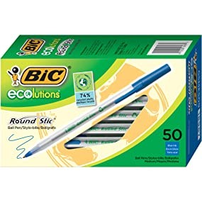 BIC Ecolutions Round Stic Ball Pens feature a versatile 1.0mm medium point that handles a wide variety of writing applications. The black ink flows freely, providing a smooth writing experience that keeps pace with your thoughts. The round translucent barrel provides a comfortable grip while allowing you to see the remaining ink supply at a glance. The BIC Ecolutions Round Stic Ball Pen is made with 74 percent recycled plastic.