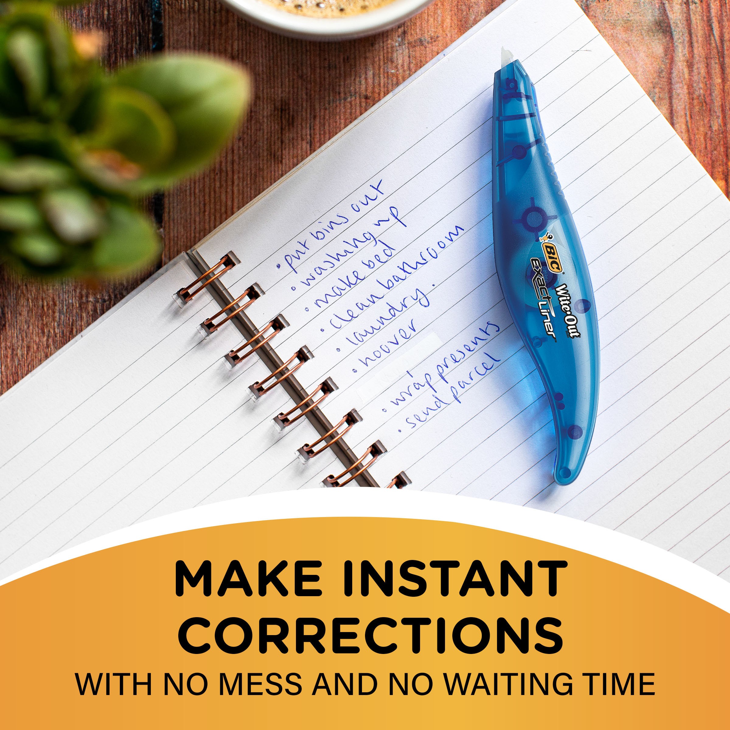 BIC Wite-Out Brand Exact Liner Correction Tape lets you make fast, easy, and precise corrections to your documents. Suitable for both left- and right-handed use, the tape dispenser features a natural shape that fits nicely in your hand and a grip zone that provides comfort and control while you work.