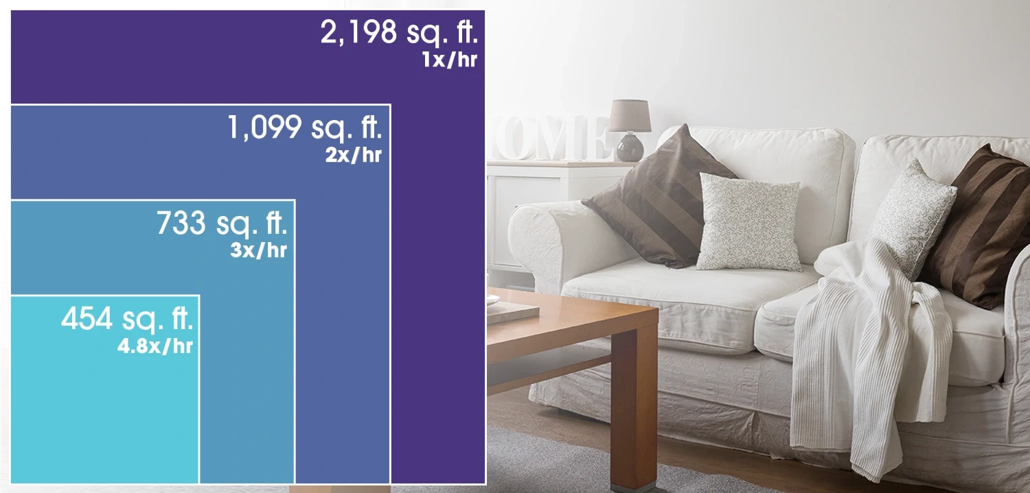 Effective up to 1,650 sq. ft. at one air change per hour, the KC860U will filter the air in the AHAM Suggested Room Size of 341 sq. ft. at 4.8 air changes per hour