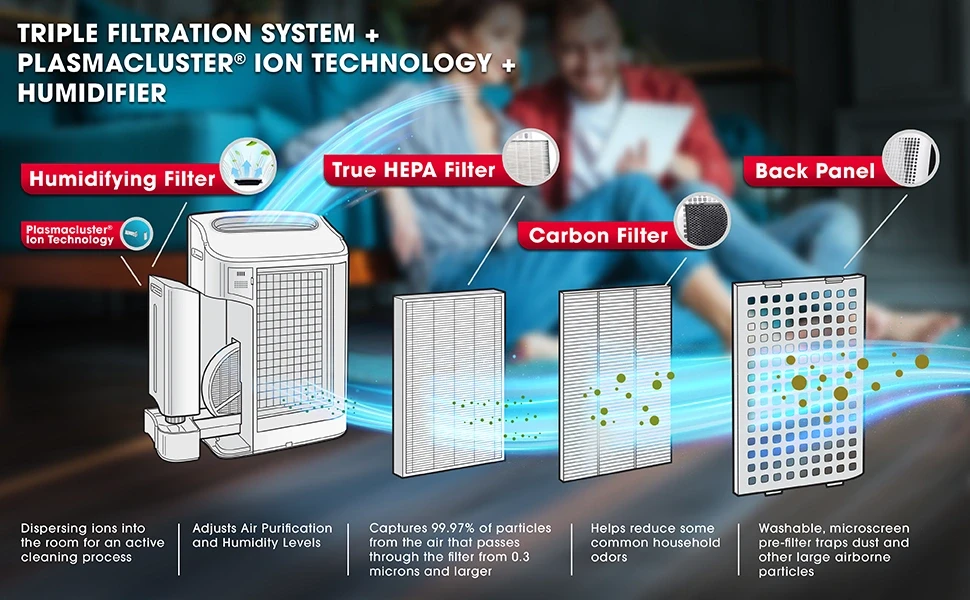 Beyond passive filtration, our KC860U features Plasmacluster Ion Technology for an active cleaning process