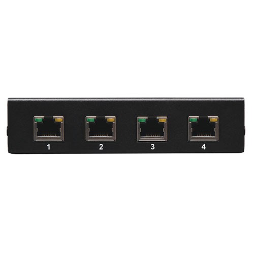 The B140-004 transmitter and receivers connect to each other with Cat5e/6 cabling, which makes installation even more convenient. Cat5e/6 cabling is readily available and cost-effective, especially if you need to use plenum-rated cabling to meet fire codes for cable runs inside walls or ceilings. For maximum signal integrity, resolution, and distance, Tripp Lite recommends using solid-conductor Cat5e/6 cabling, such as Tripp Lite’s N202-series.