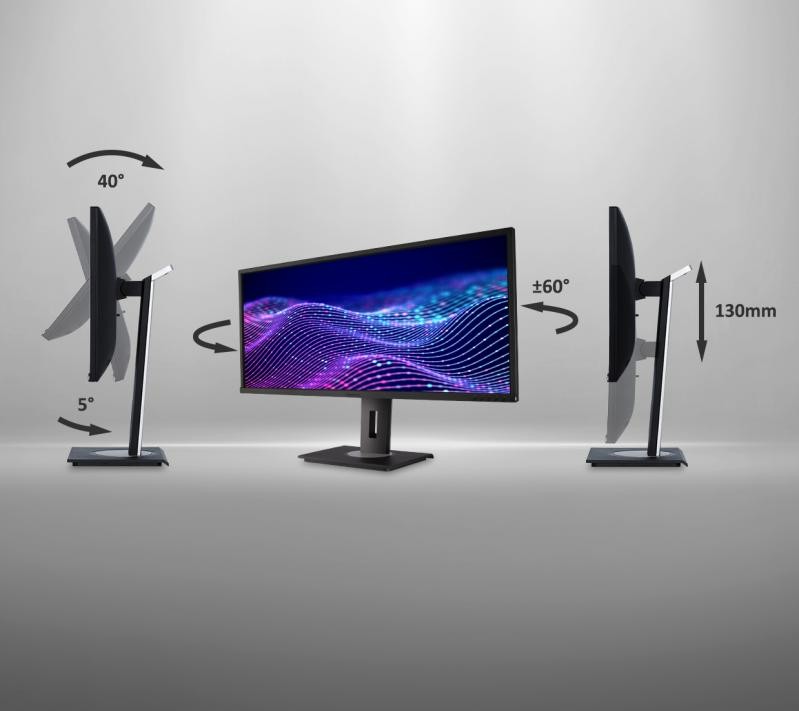 With advanced ergonomic features including swivel, height adjust, and tilt, this monitor is designed to provide a greater range of adjustment for increased productivity and comfort. The monitor can tilt up to 40-degrees, making it ideal for use during group discussions and screen sharing.